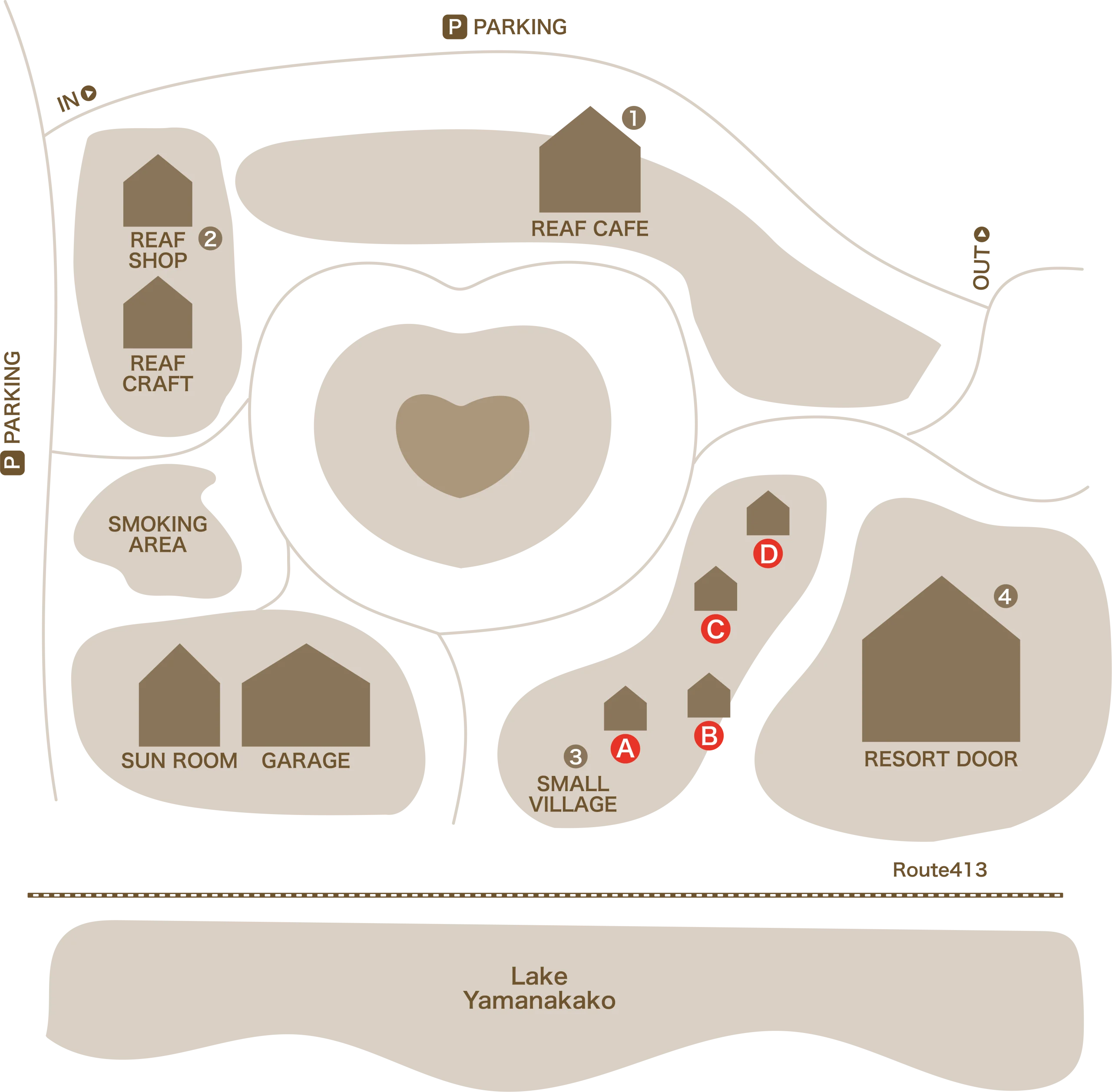 ❸ スモールビレッジ : 4つの小屋からなる有料レンタルルーム