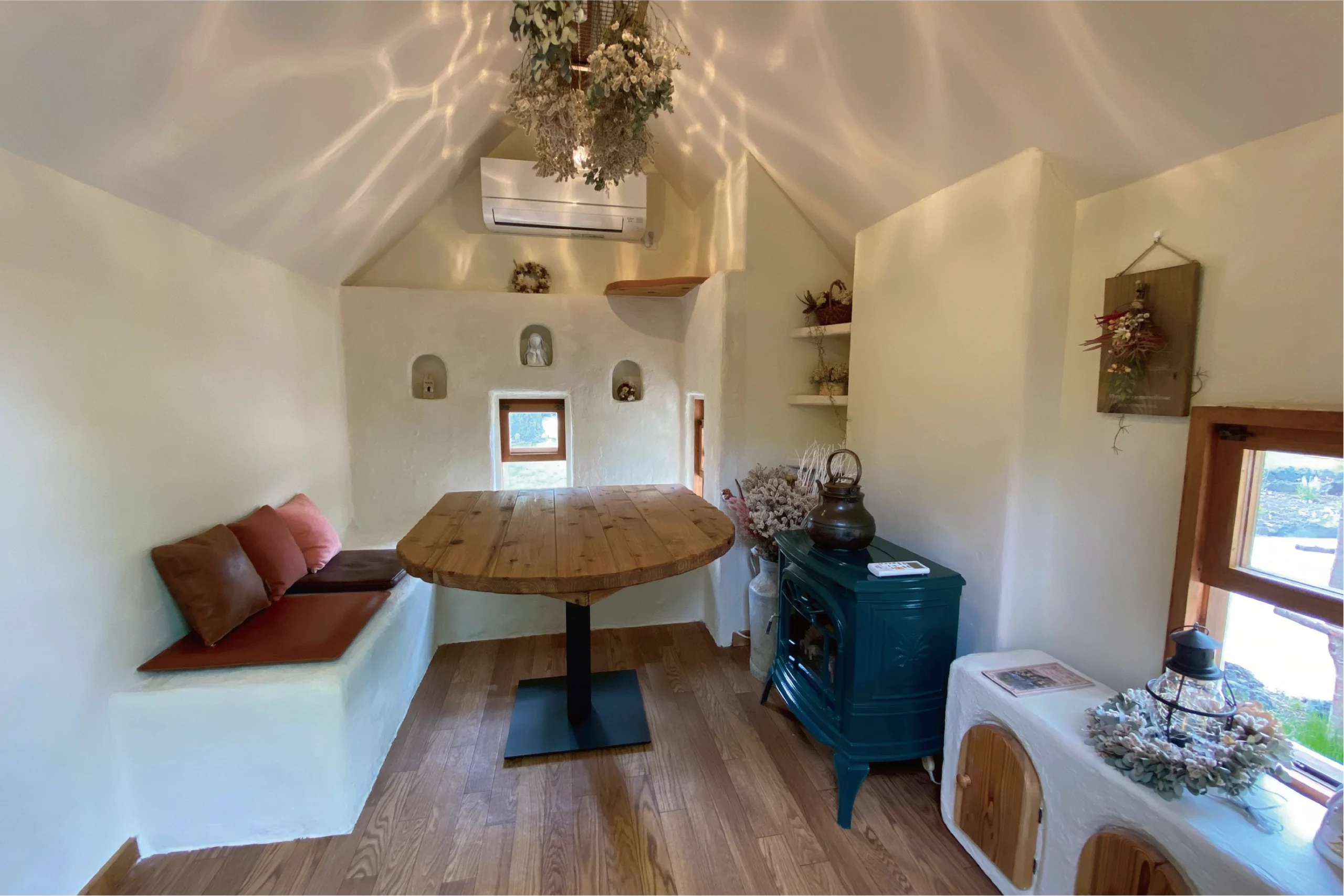 暮らしの本質が詰まった小さな家。それを私たちはレンタルルームとして貸し出しています。場内に点在する4つの小屋は地形や風景に合わせてつくられています。限られた空間でありながら、心地よく滞在できるように随所にはさまざまな工夫が込められています。小さな家から、自然が織りなす風景や季節の移り変わりをぜひお楽しみください。
